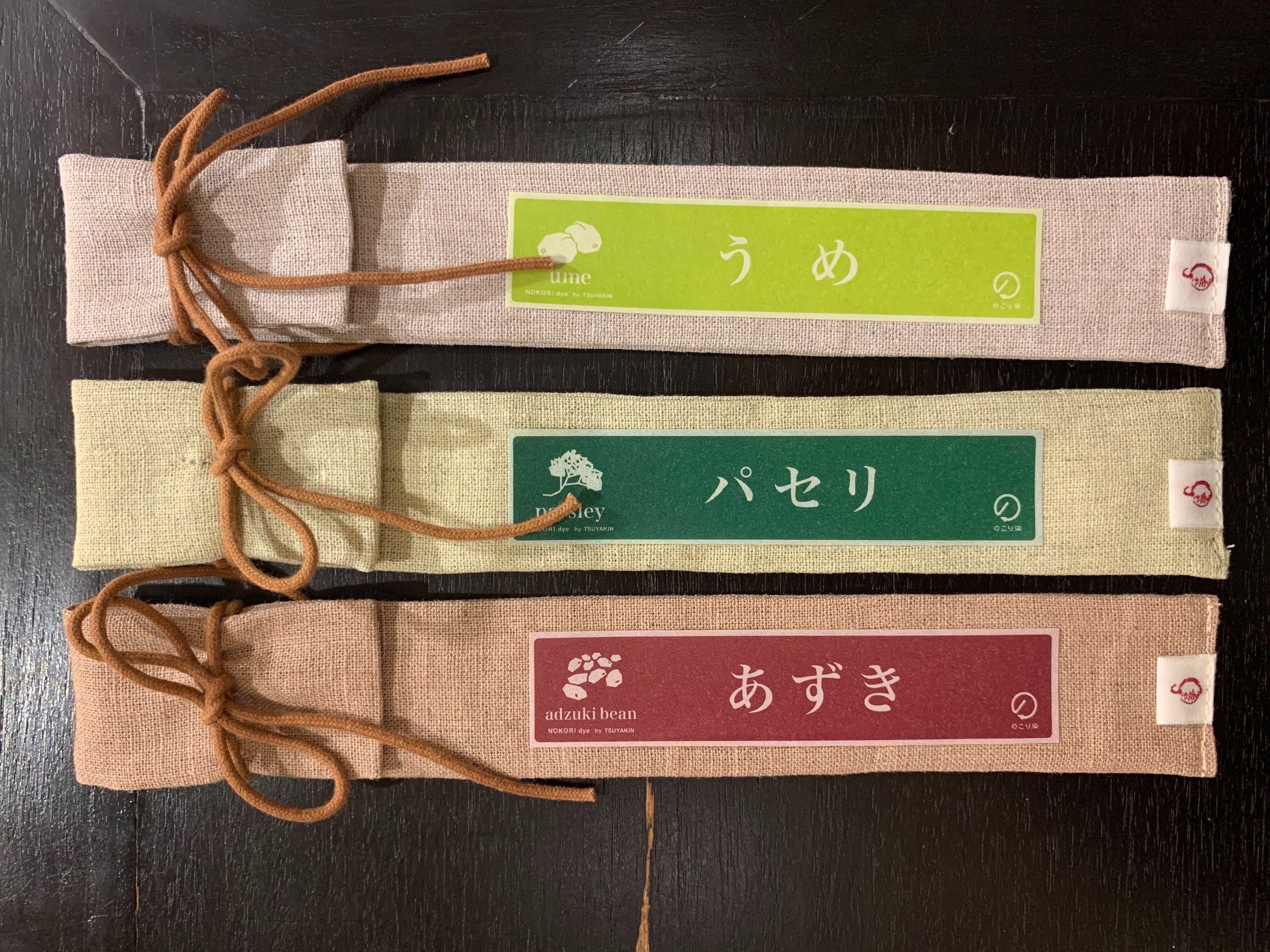 <のこり染め>とは、自然が私たちにくれた食べ物の、食べない部分を利用して布に色を付ける技術で染めた布や製品のことです。