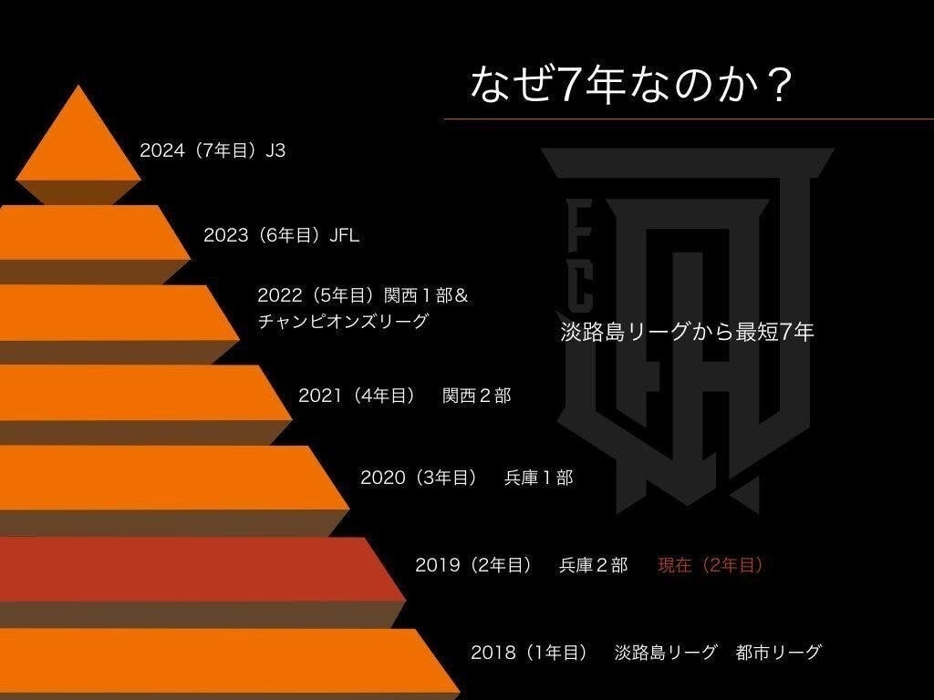 ですので、7年でJ3を目指す。このビジョンをただ掲げるだけでなく
