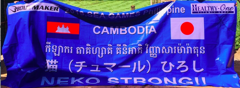▲これを、カンボジアから日本へお持ちします→11・8(金)、日本で皆様のメッセージを記入します→フィリピンのメインスタジアムへGO!!