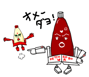 ところが。。。相棒のケチャップロボット「ケチャロボR」については製作資金が不足して未だシール化できていません。。。