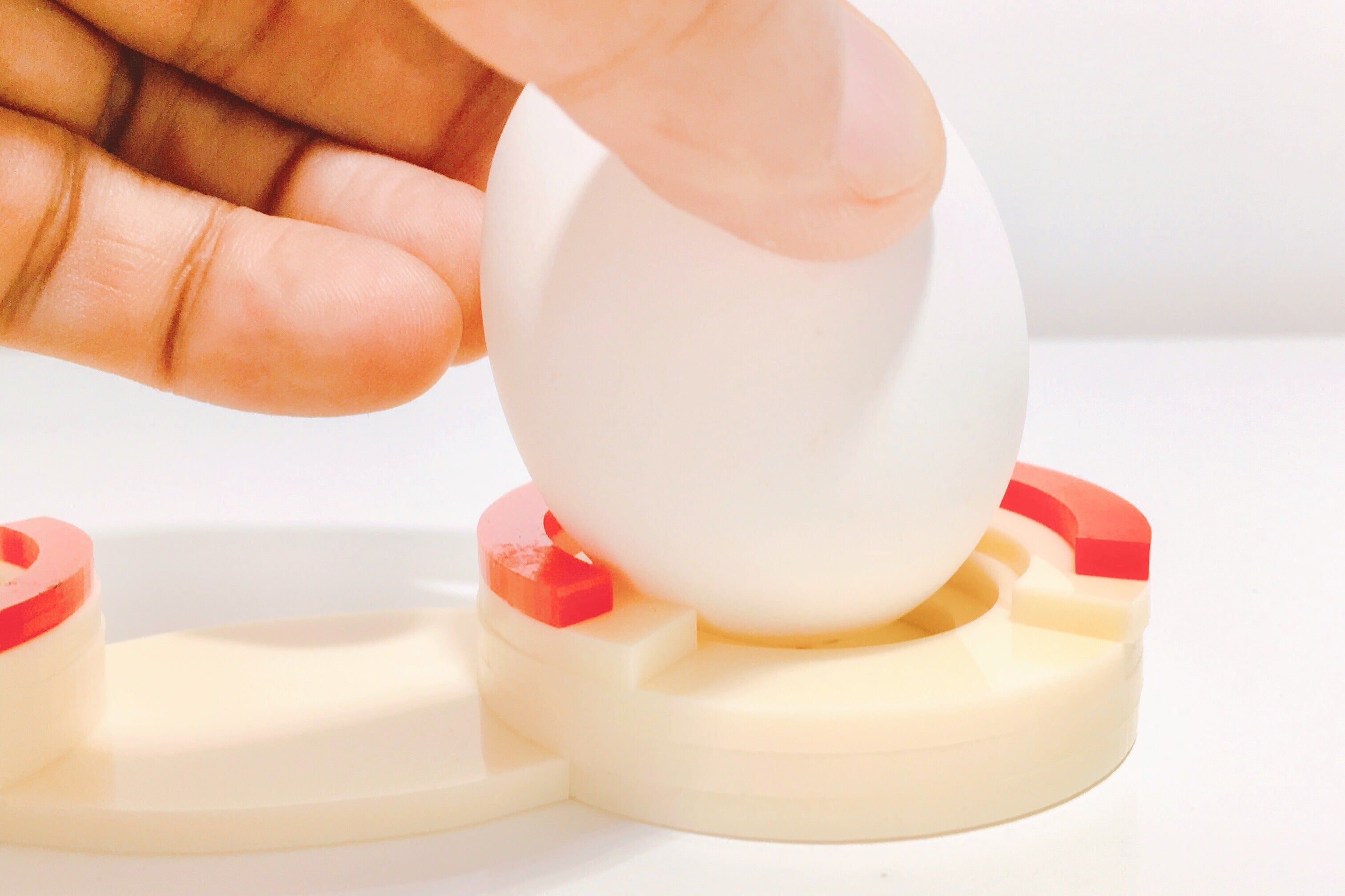 ゆでタマゴの皮をむきやすくする「ピンホール針」も装備、タマゴを強く押し付けると小さな穴があきます!