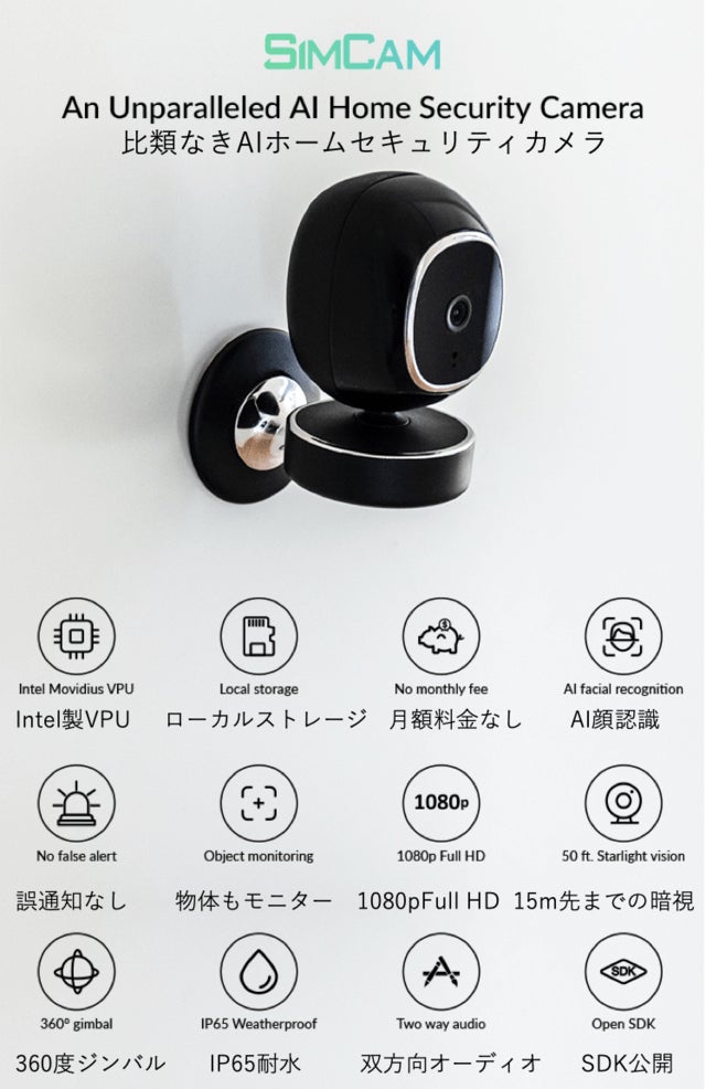 (※SimCamはWi-Fiなしでも人や顔の検出および分析を行い、記録します。ただし、ライブストリームにアクセスしたり、通知を受け取るなどはWiFiが必要です)