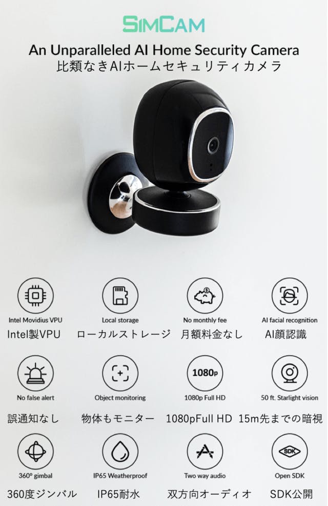 「SimCam(シムカム)」はネットワーク接続不要で手軽に使えるAIセキュリティカメラです。