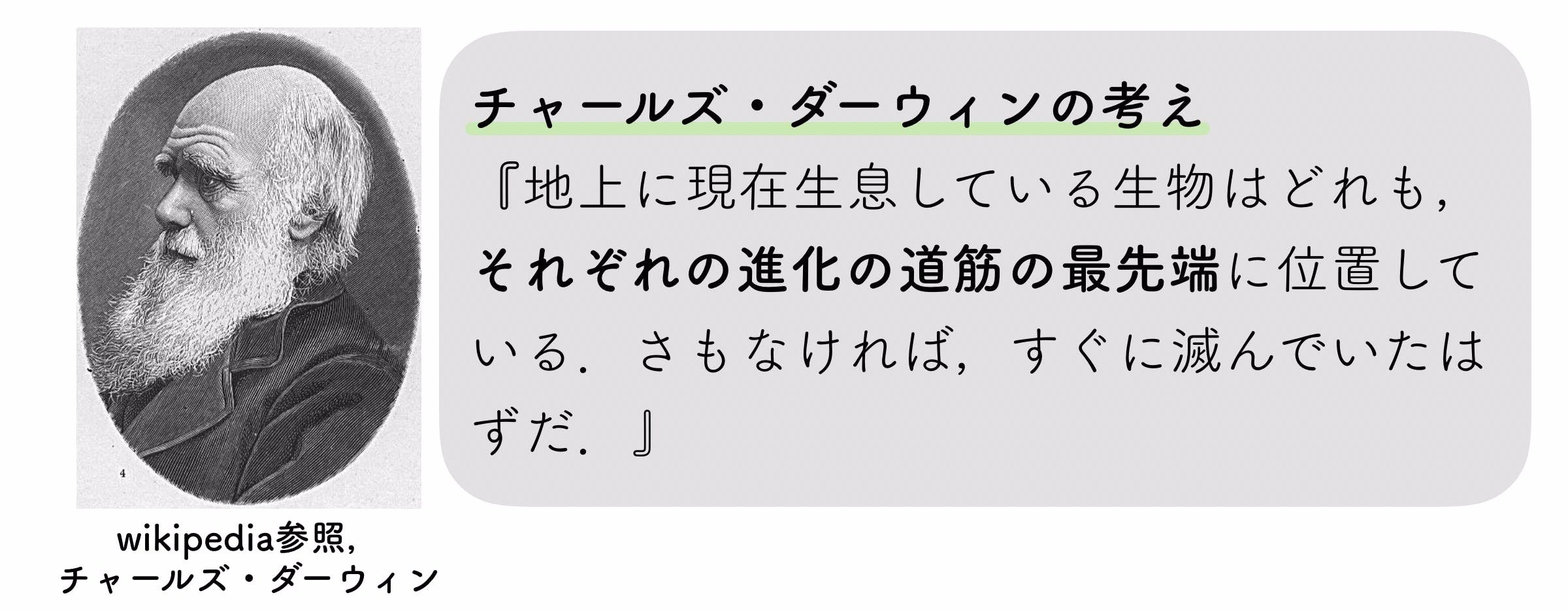 地上に現在生息している植物・動物はどれも,それぞれの進化の道筋の最先端にいると,,,