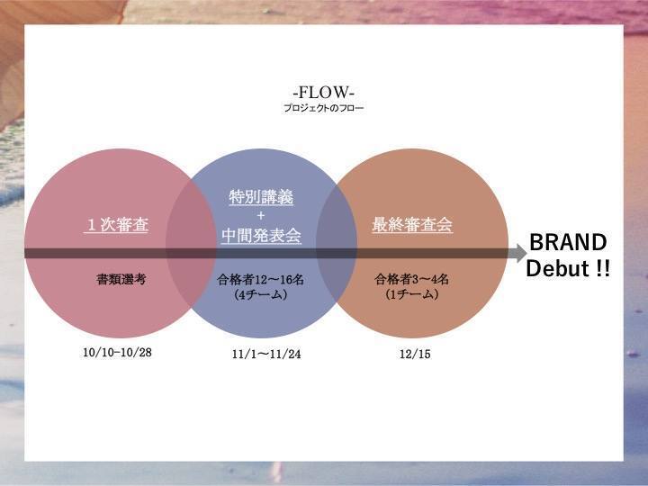 10月10日(木)から10月28日(月)まで衣服系ブランドプロデューサーを志す女性を募集し、12月15日(日)の最終審査会にて、実際にブランドデビューする優勝チームを決めます。