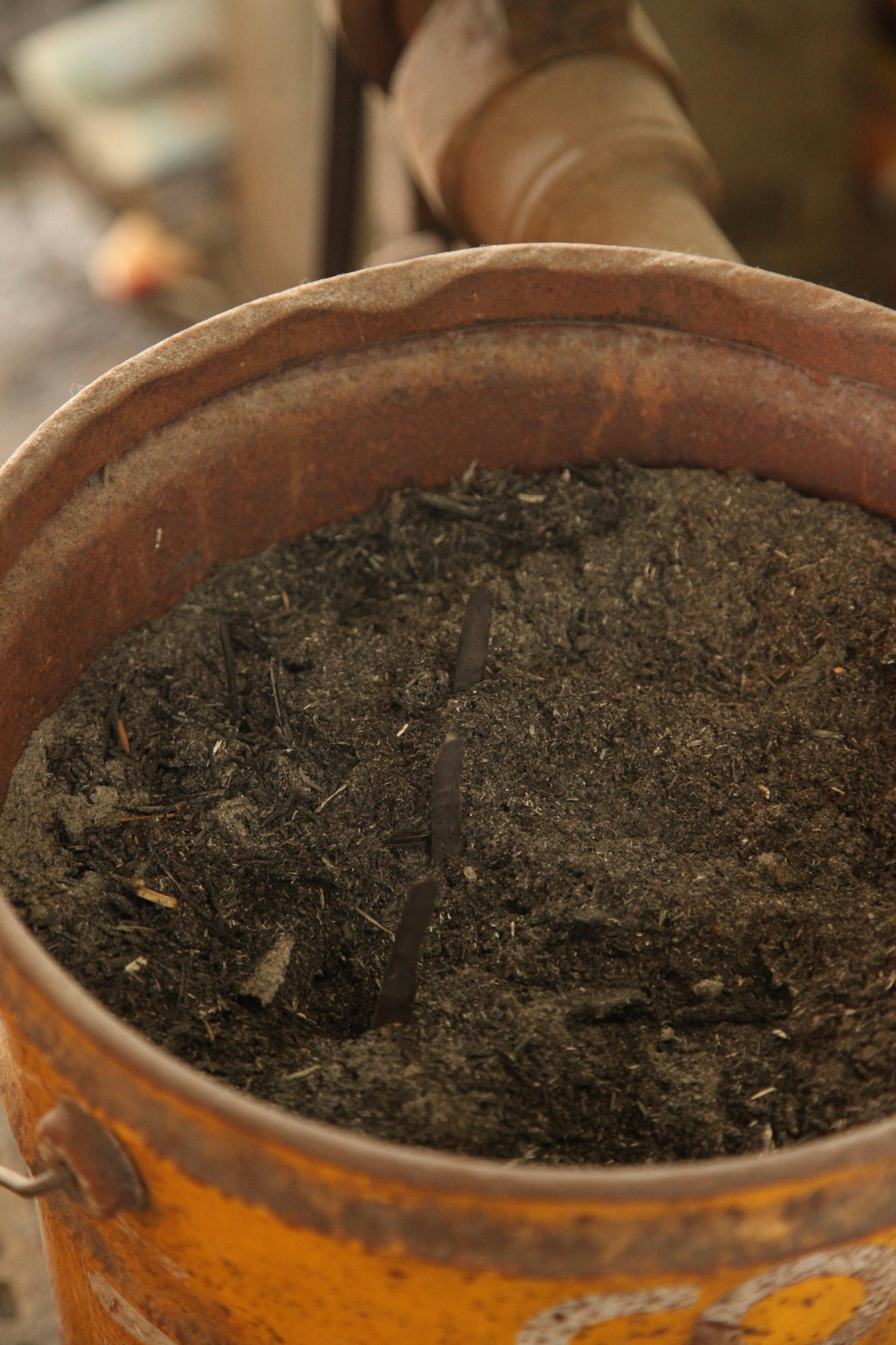 2~4の工程で加わった力による組織のムラを均一化して正常な状態に整えるため、刃物を760~800℃まで赤め、「藁灰」の中に入れ一昼夜かけてゆっくりと除冷する。