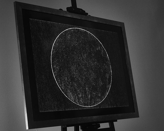 (細かい穴で制作された満月は角度を変えると新月に サイズは1018mmx770mm)