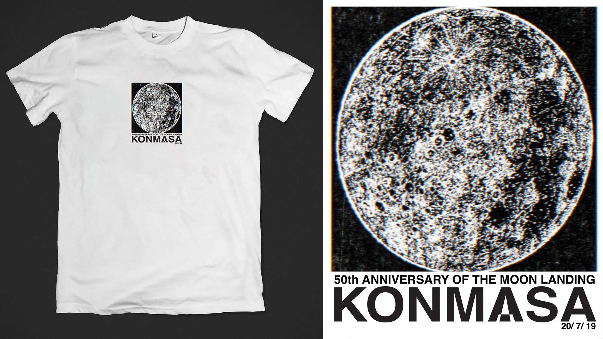 ・2019年7月、月面着陸50周年を記念しKONMASAは穴で大きな満月を描いた。それはNASAやESAの施設を多数訪れ、宇宙に最もロマンを感じる男の渾身の作品である。こちらはその作品を本人がヴィンテージカメラで撮影し、Tシャツに印刷したものです。クラウドファンディング限定商品です。