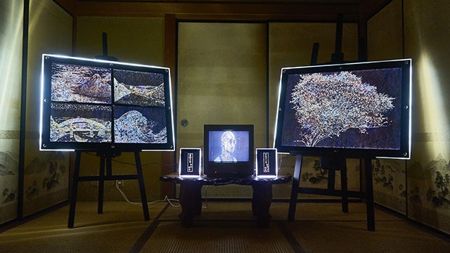 それらは和紙に無数の穴を空け、暗室にて後ろから光らせると左右で絵が変わる