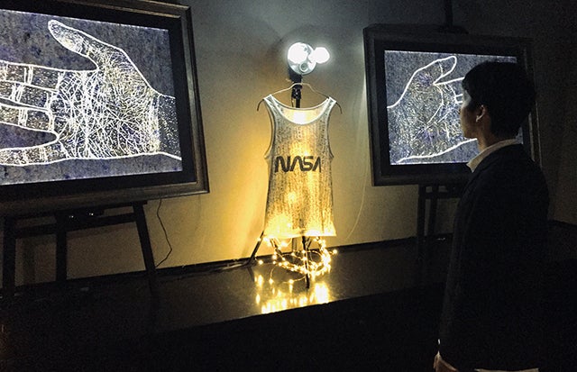 (自身の手を忠実に再現した作品「掌中天河」)