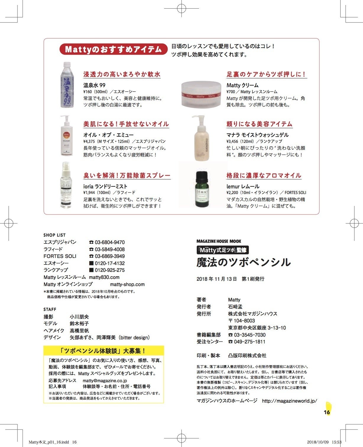 ◼️カリスマ足ツボ師のMattyさんがムック本「魔法のつぼペンシル」(マガジンハウス)に掲載してくださいました!