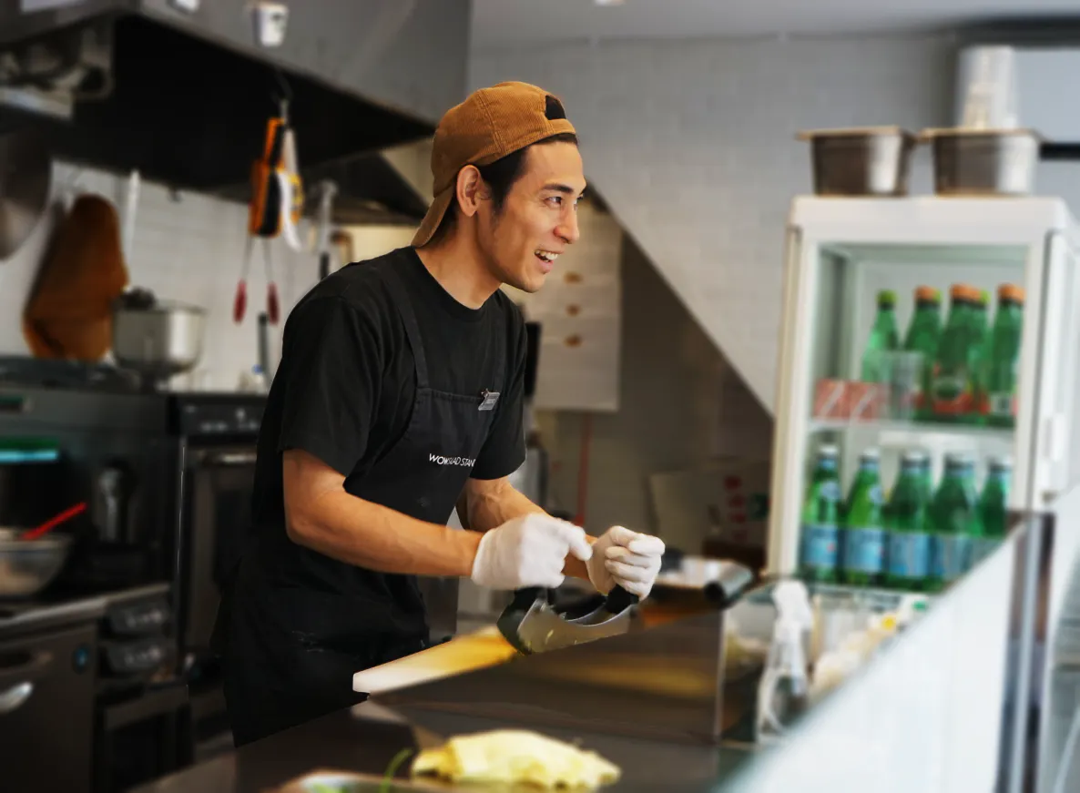 店名の「WOW (ワゥ)」の由来は、僕自身が東京でチョップドサラダに出会った瞬間がまさに“Wow!!”だったことから来ています。それは僕の中のサラダの概念が覆された瞬間でした!