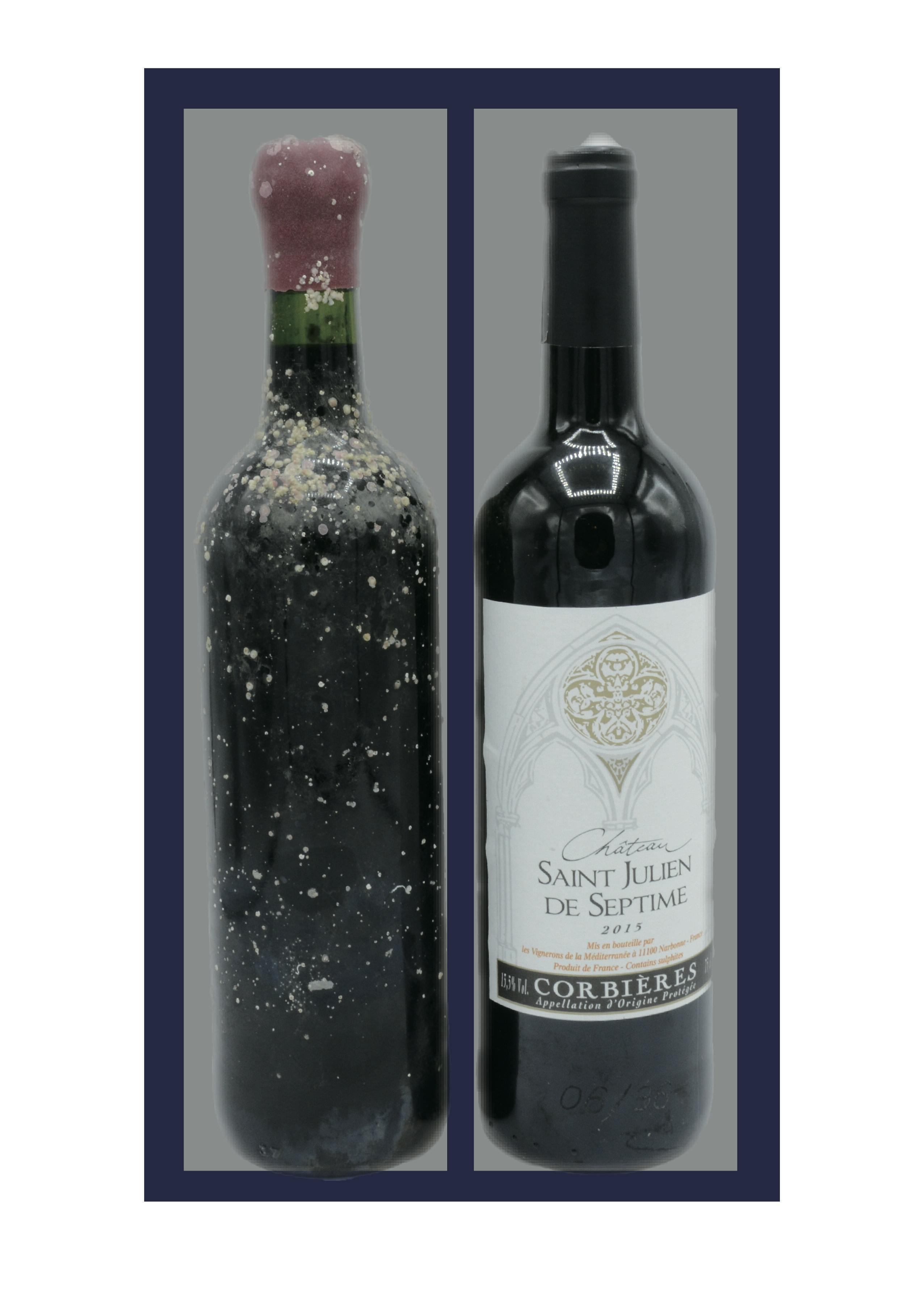 実際のリターン品は、ポルトガル産の赤ワインを宮城県牡鹿郡女川町の沖合20mに6ヵ月程度沈めた1本とその同一の商品の飲み比べ2本セットになります。現在は、今回沈めたワインは、日本で殆ど流通していない厳選した商品のため、一般の方が購入が困難かと思いまして2本セットでのリターン品の提供になりました。
