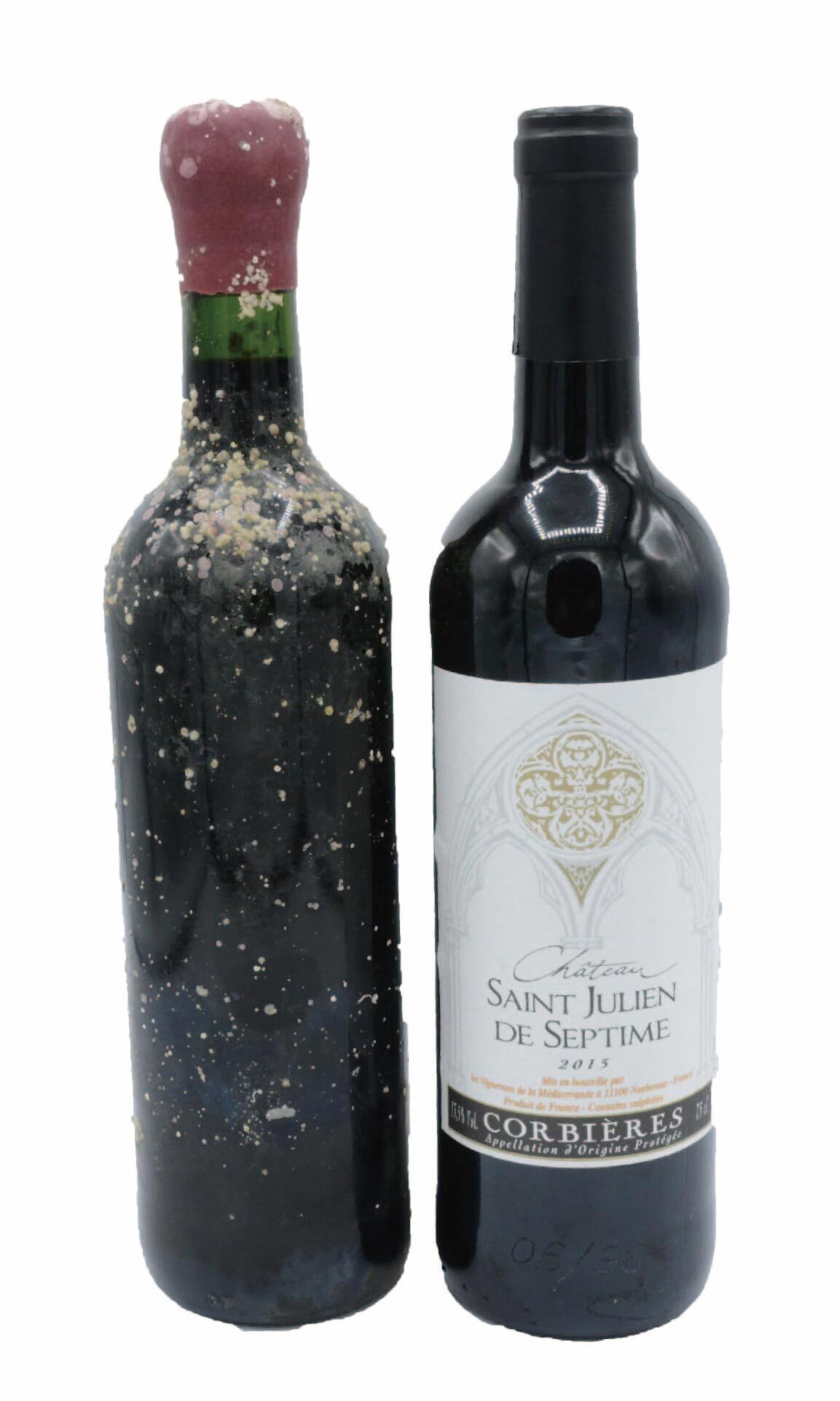 実際のリターン品は、ポルトガル産の赤ワインを宮城県牡鹿郡女川町の沖合20mに6ヵ月程度沈めた1本とその同一の商品の飲み比べ2本セットになります。現在は、今回沈めたワインは、日本で殆ど流通していない厳選した商品のため、一般の方が購入が困難かと思いまして2本セットでのリターン品の提供になりました。