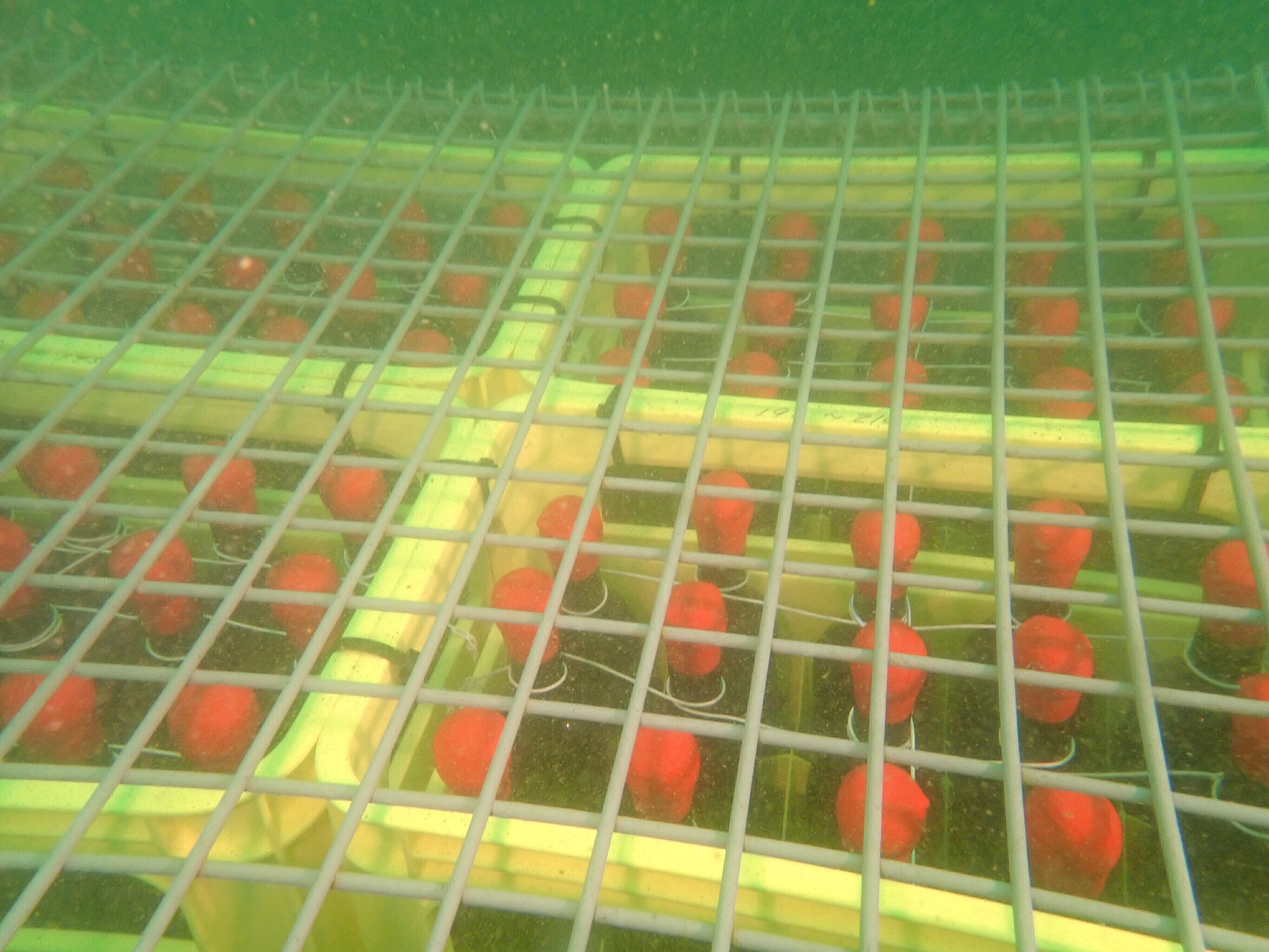 ①水深20mで大きな圧力とほぼ光が届かないという理想的な環境で完成した海底熟成ワイン。海底で熟成中のワイン