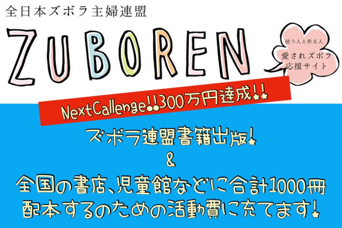 ズボ連(全日本ズボラ主婦連盟)ではSDGsの《女性の家事育児時間の軽減・男性の家事育児への参画のしやすさ》を目標に、クラウドファンディングにチャレンジします!