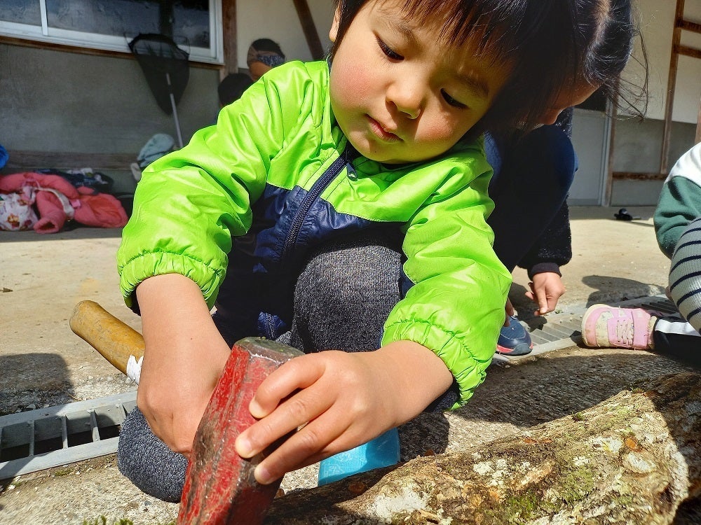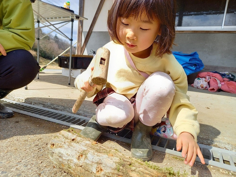 シイタケの菌うちには子どもたちが挑戦してくれてました!