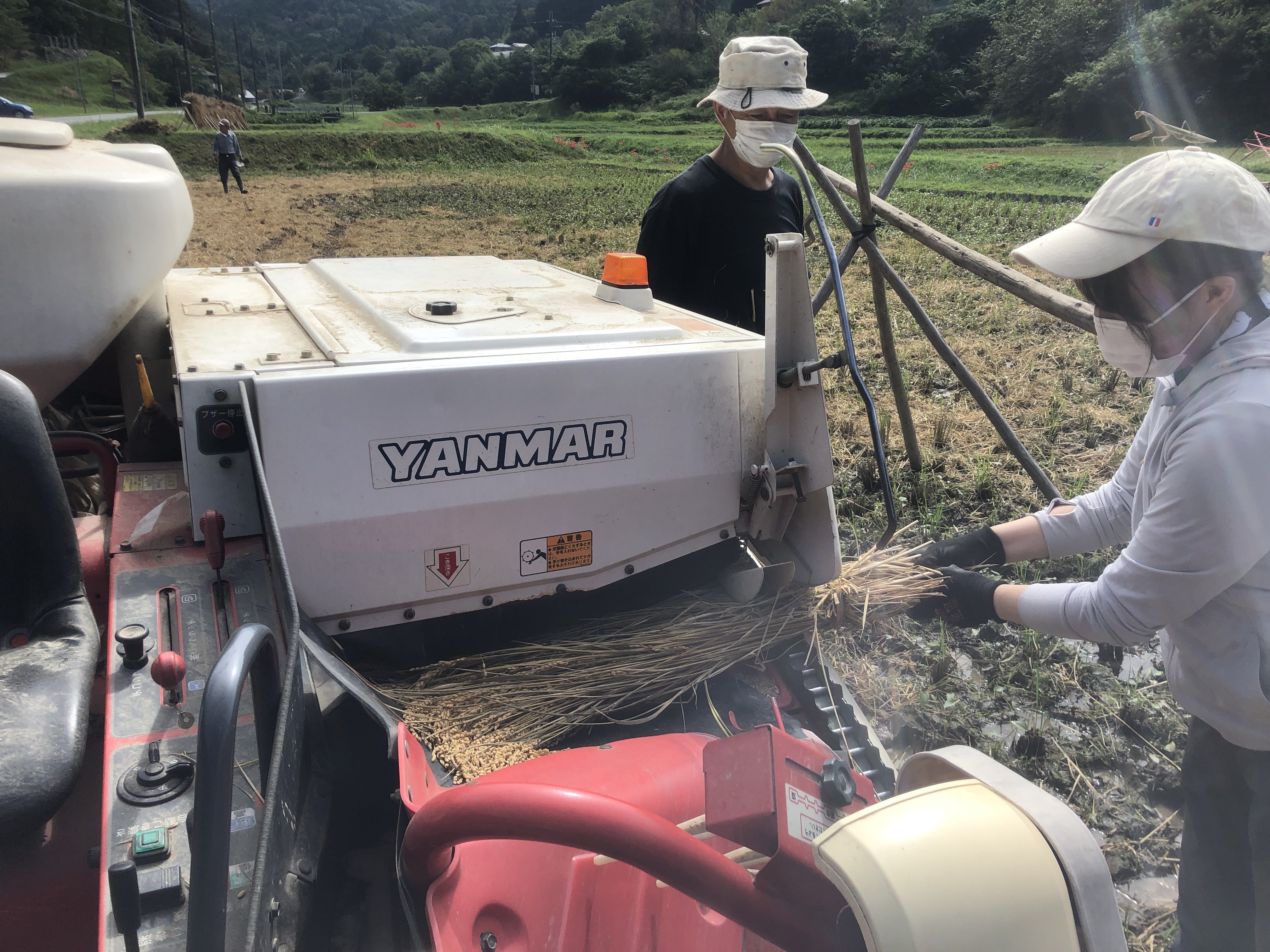 脱穀はコンバインに稲を流し込んでいきます。(単純作業なのもあって以外と疲れます。。)