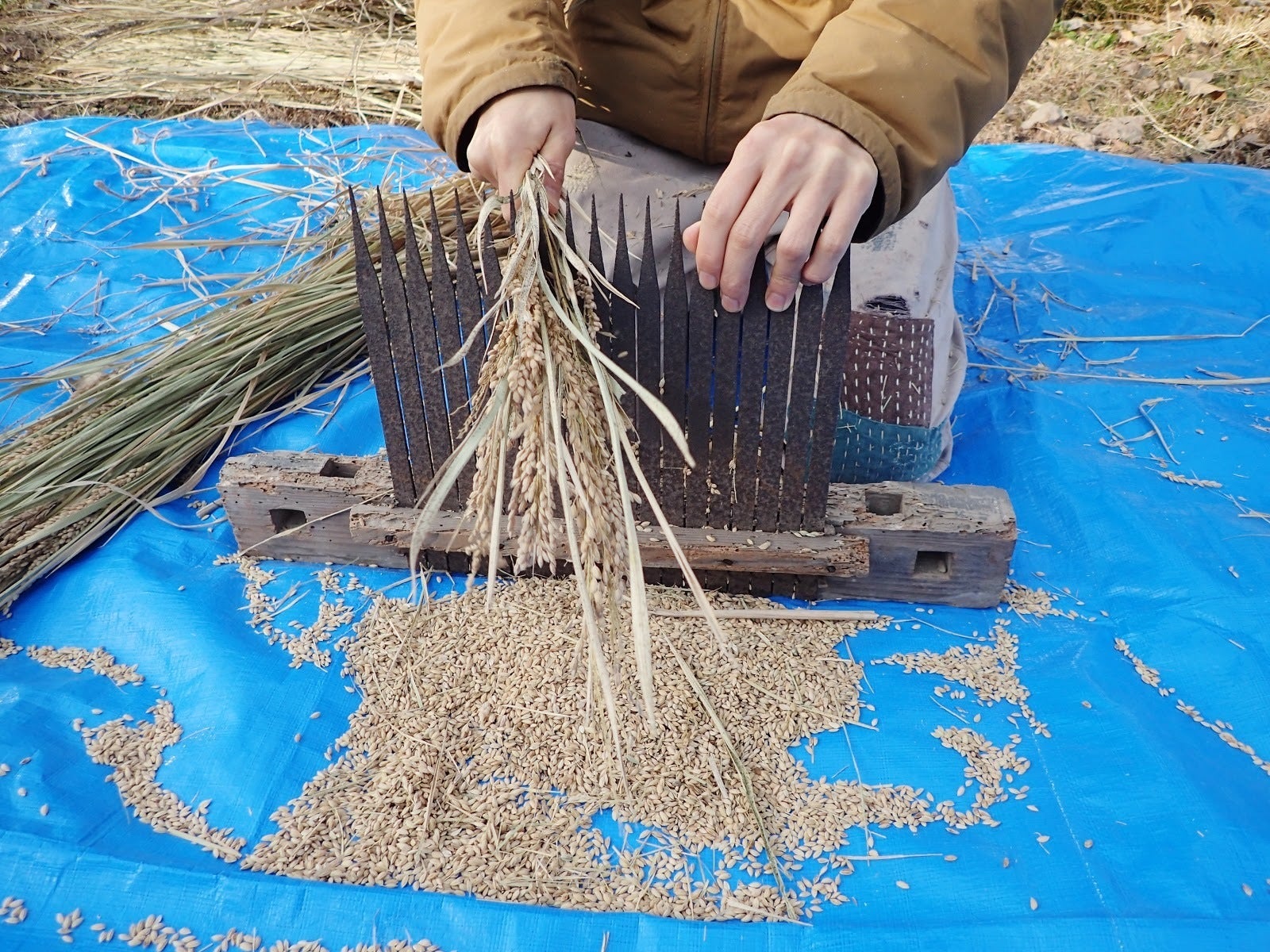 と同時に昔の農家さんたちは、脱穀も手作業で行っていたのですごいとしか言いようがありません...