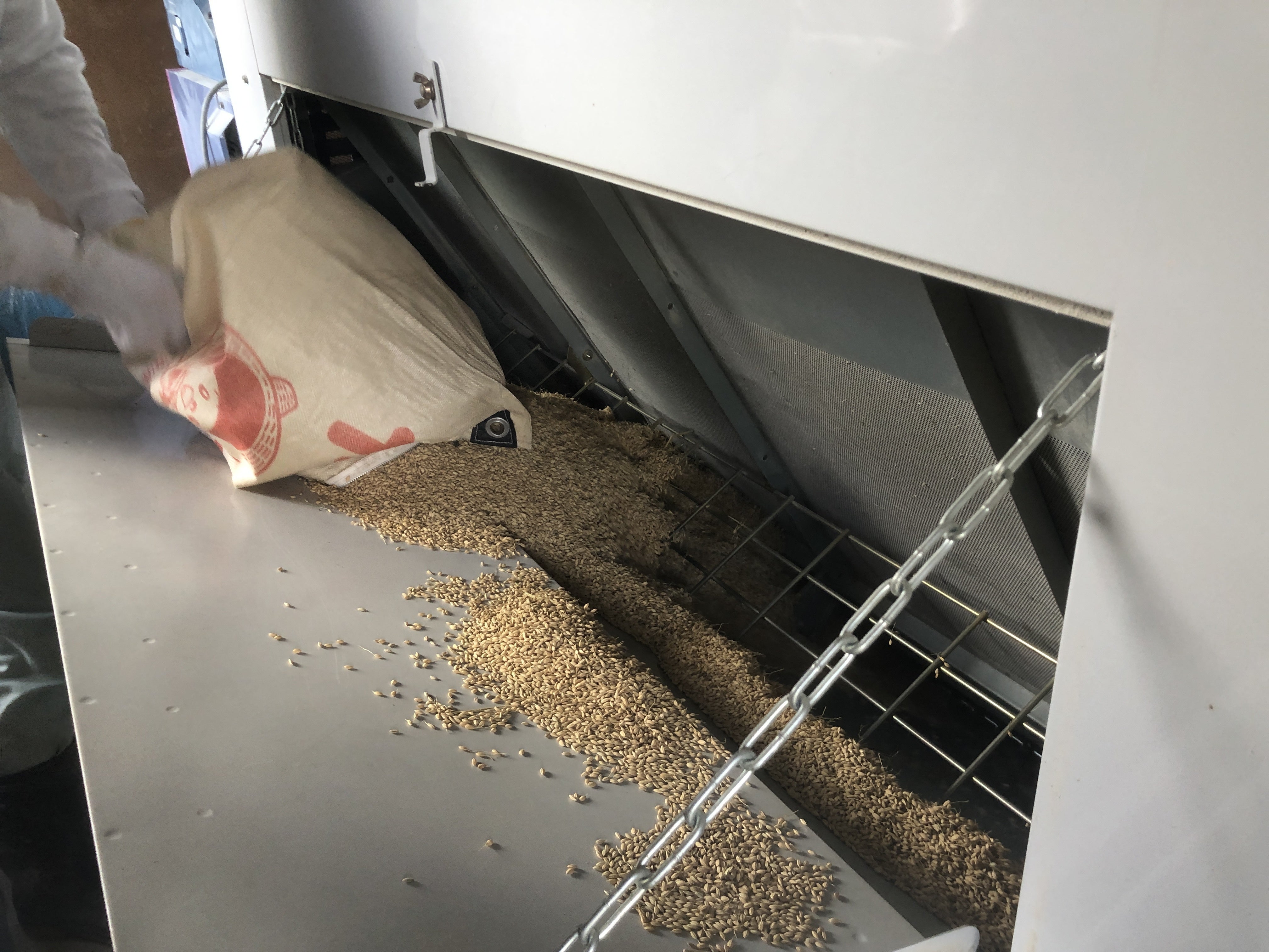 籾摺りとは、もみ殻を取り除いて玄米にしていく作業のことを言います。脱稿後はまだ、もみ殻がついた状態です。