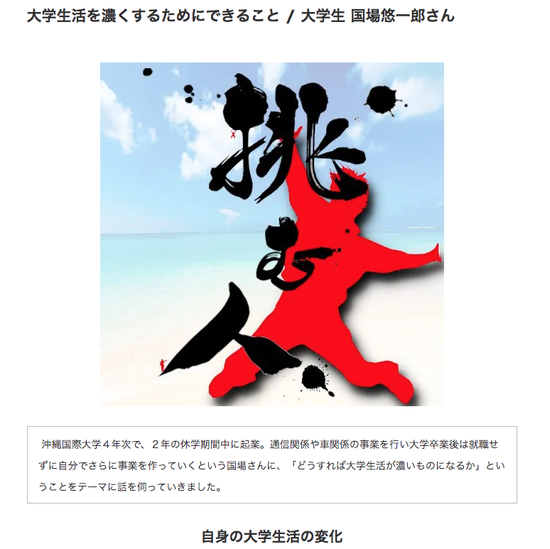 もしこれが、沖縄の各局の色んなカテゴリの番組を1つのメディアに集結すればかなり面白いことになるんじゃないか!?と考えパートナーの友利と一緒に立ち上げに至りました。