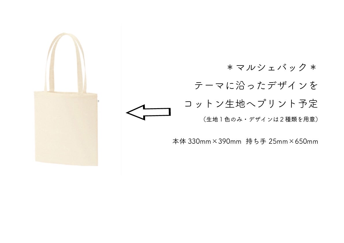 今回のクラウドファンディング限定品としては、ポストカード(¥5,000コース)・マルシェバック(¥30,000・¥50,000コース)がございます。こちらのデザインはランダムとなっており、ご指定はできませんので予めご了承ください。