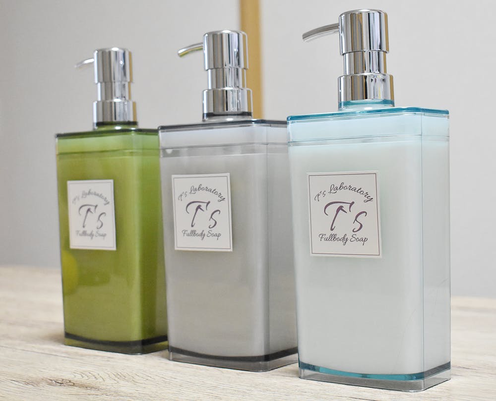 そこで開発されたのが、T`s Laboratory Fullbody Soapという今までになかった保湿・消臭が同時に行えるボディソープ(業務用10リットル)を開発しました。