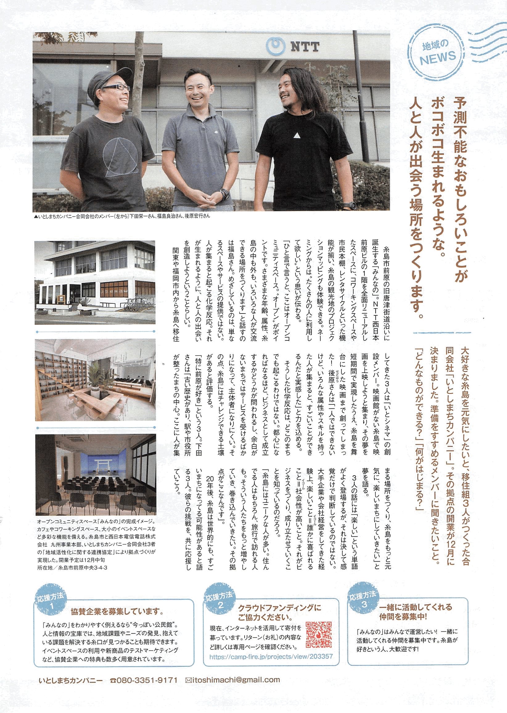 "地域みっちゃく生活情報紙。"マイタウン伊都11月号にて、自分達の取り組みを掲載していただきました!!