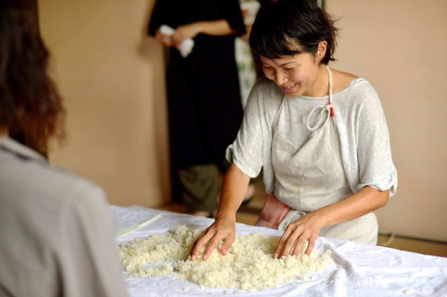 2012年に東京から福岡へ移住されて、農薬と肥料を使わない自然栽培のお米を作っている寺口さん夫妻。自分たちで作ったお米や大豆でお味噌を仕込み、独学で麹作りを習得した後、現在は麹文化研究家の南智征にの元でも学ばれています。麹や玄米餅、玄米ポンせん、米ぬか浄化ソープなどお米にまつわるプロダクトを作り、麹づくりを広めてらっしゃいます!
