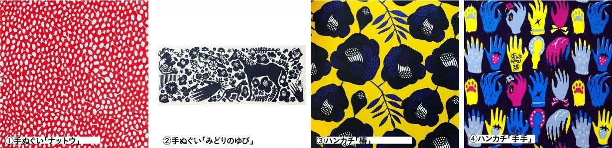 ・てぬぐいまたはハンカチ各3種類の中からお好きな1種類