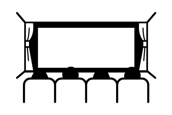 定期的に開催予定の映画鑑賞イベント時には、ゆったりとしたソファやキャンプ用のリクライニングチェアを用意しています。必要な機材は揃っていますので、すぐにオリジナルの映画イベントを行うこともできます。