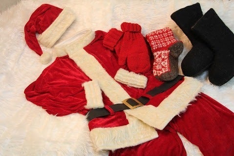 ※サンタ衣装 1セット:帽子・ジャケット・ズボン・袋・ベルト・口ヒゲ・あごヒゲ・眉毛です。