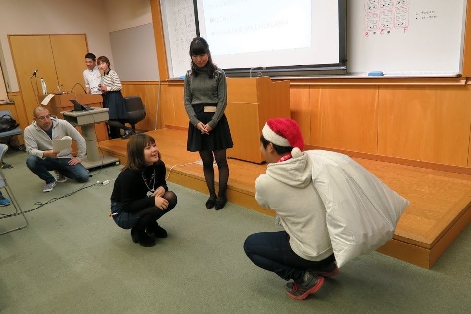 サンタになるための「講習会」を実施。ロープレなどで実際にサンタになるための訓練を行います。