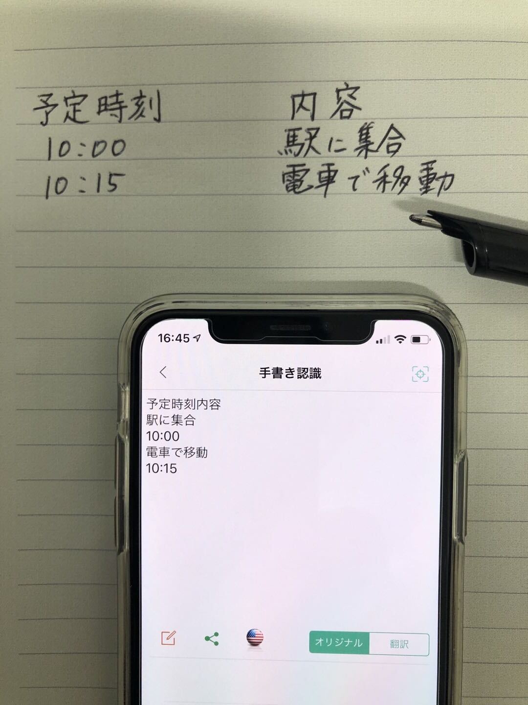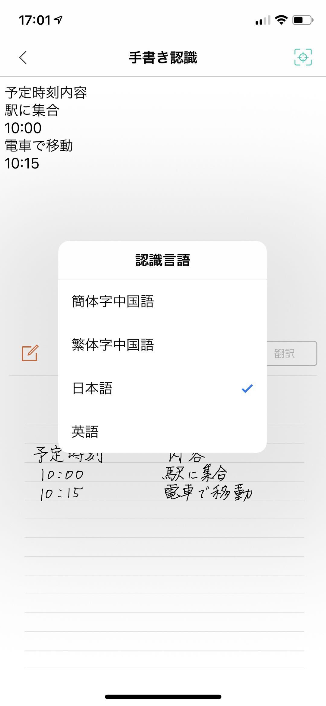 手書き文字をテキスト化、クラウド翻訳で多言語に翻訳する機能