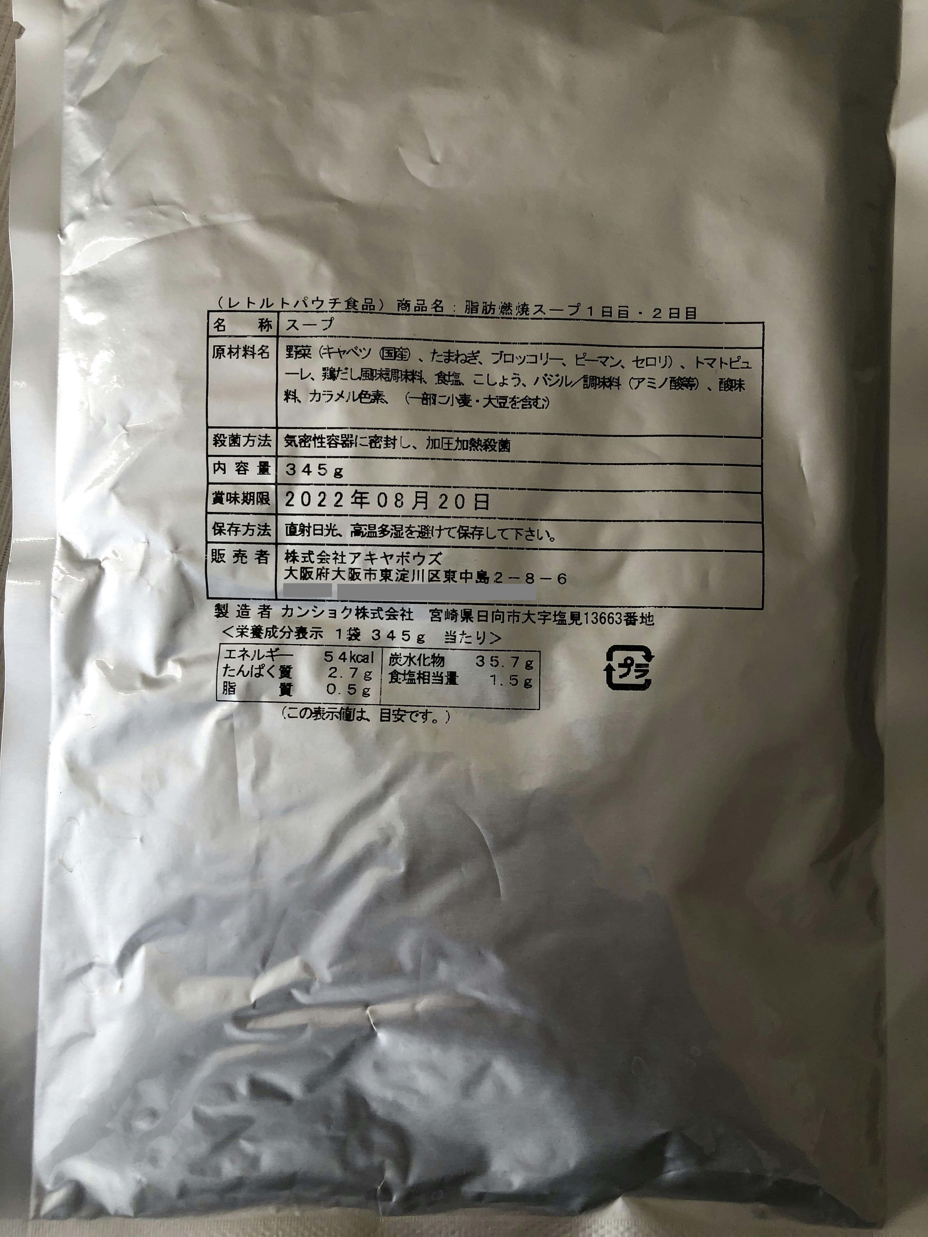 ・昨今では、ヴィーガンの方々も増えている為、菜食主義の方々は、5日目以降のタンパク質摂取を大豆ミートなどの豆類で応用してください。しかしながら、3日目以降のスープにはささみが入っておりますので、こちらをご了承いただける方のみ、ご支援の程よろしくお願い致します。