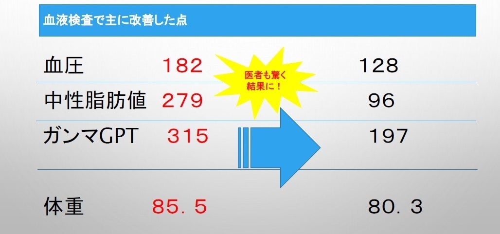 実際に血液検査を脂肪燃焼スープを始める前に取り、脂肪燃焼スープをやる前と終えた後でびっくりするほど数値が良くなっていました。
