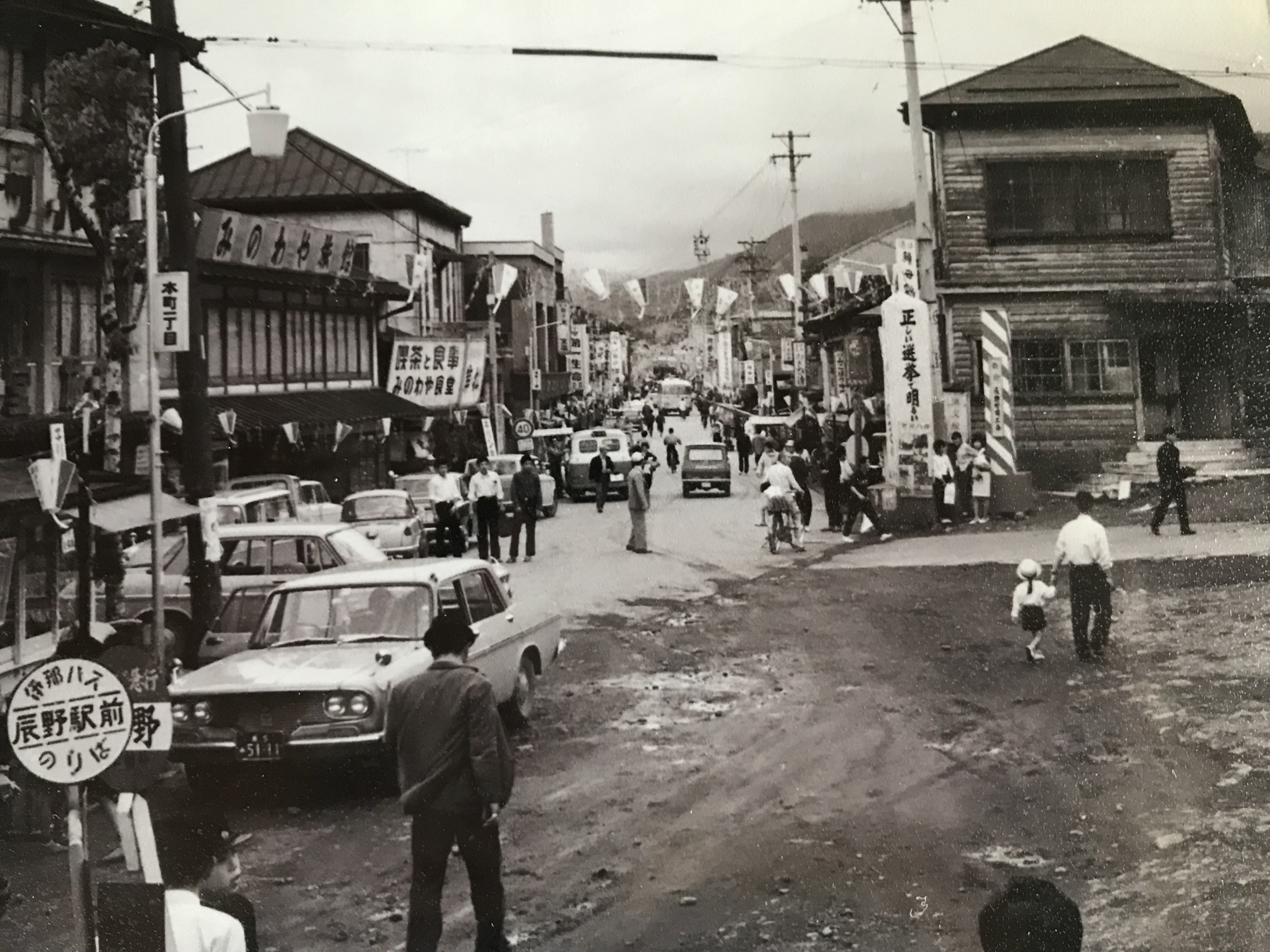 100年ほど前の下辰野商店街。当時は、商店街は歩くだけで必要なものがそろう場所だった。