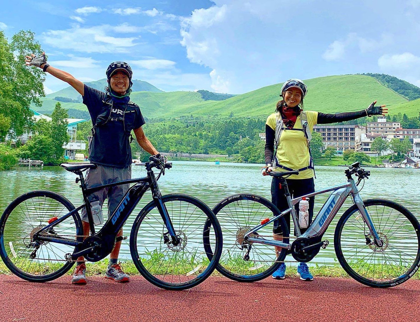 ○と編集社理事・自転車冒険家の小口良平と妻の麻利子さん。