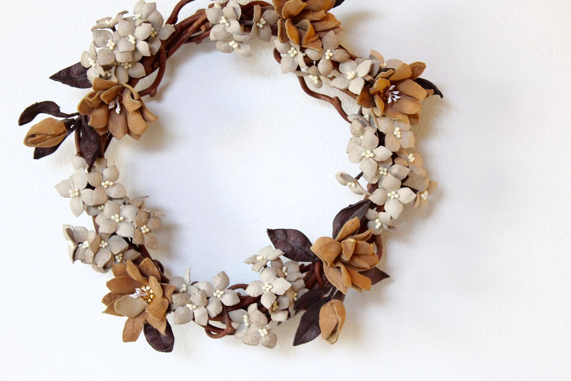 ○オーナーから最後に一言: 今回ご用意するリースは鹿革で1つ1つ作った花でできています。革の柔らかさと自然な風合いをお楽しみ頂けたらと思います。