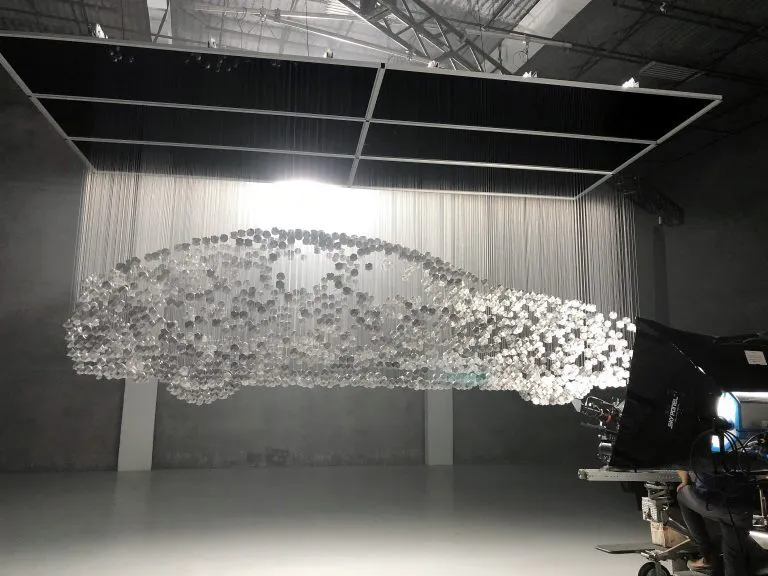 こちらのイメージは、Lexusのプロジェクトの様子です。ひとつひとつの折り紙モデルはLexusのカスタマーサービスへの感謝の手紙を元にしたものです。タローズ折り紙スタジオのスタッフ総出で、2000個を超える折り紙アートを作成し、撮影が行われました。
