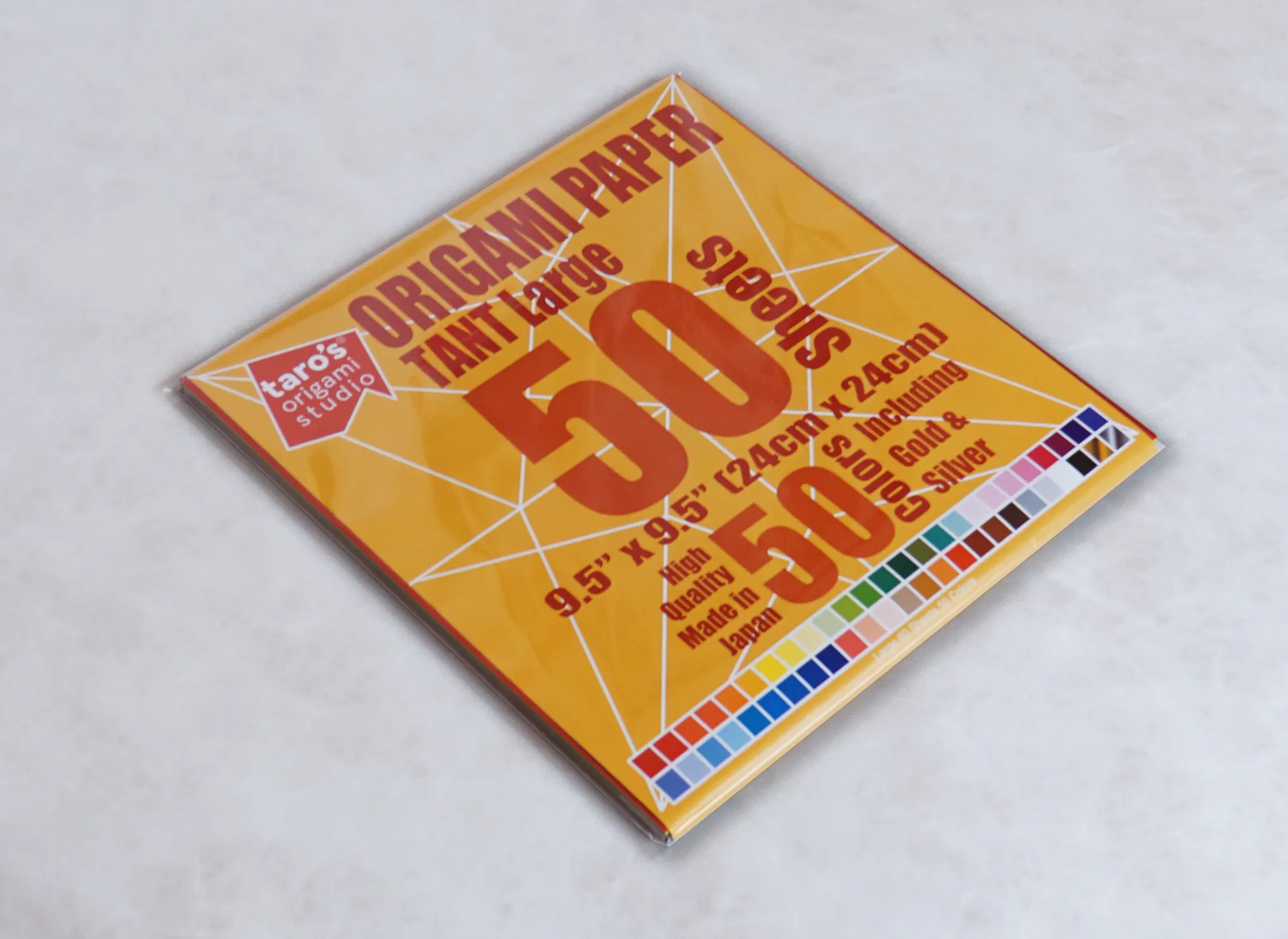今回日本に紹介するタローズ折り紙ペーパーは、そこで、折り紙の違いが、表紙の色や大きな数字で分かるように工夫しました。