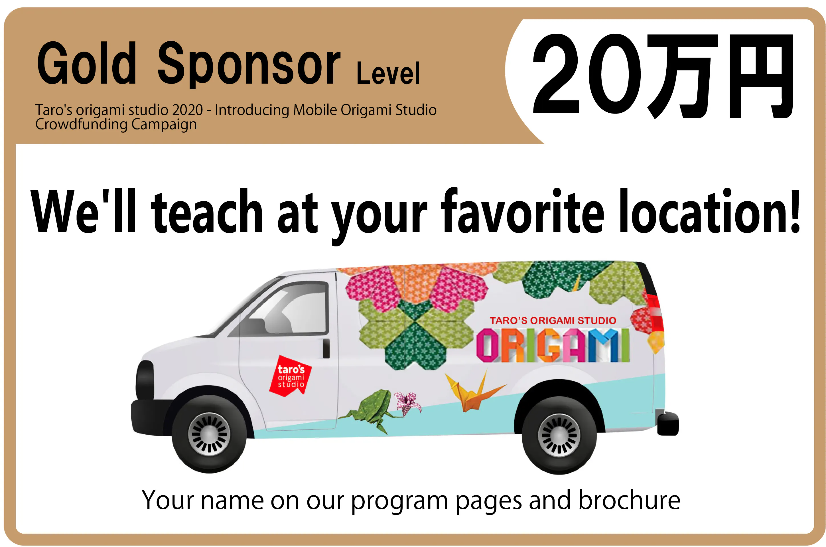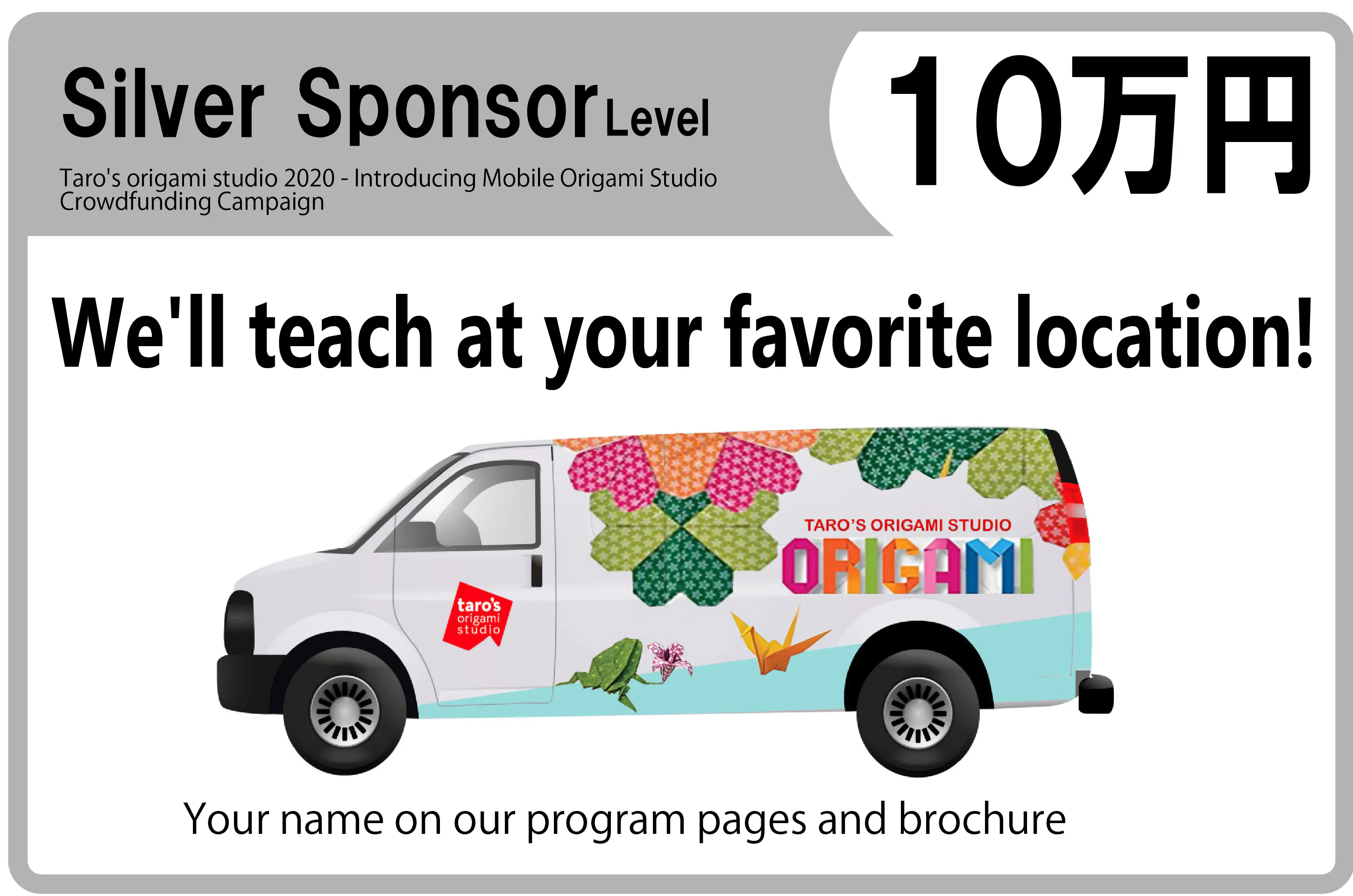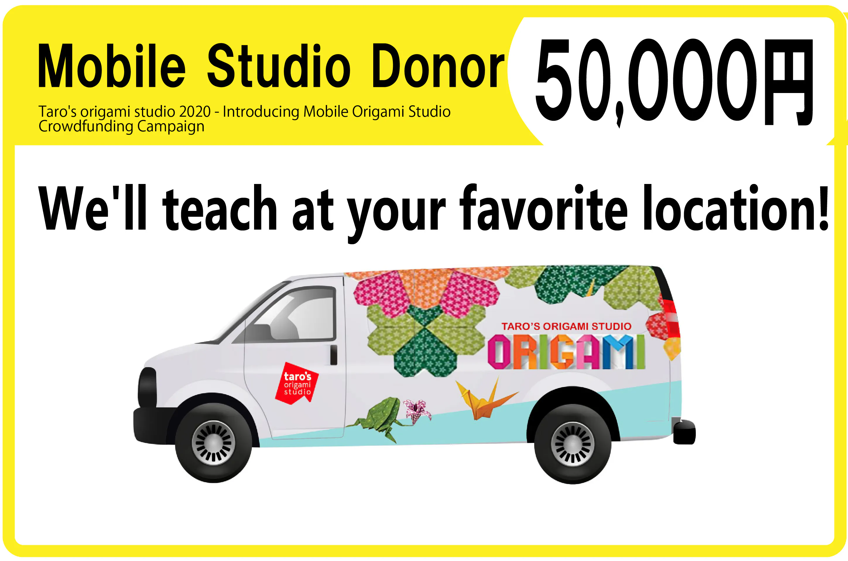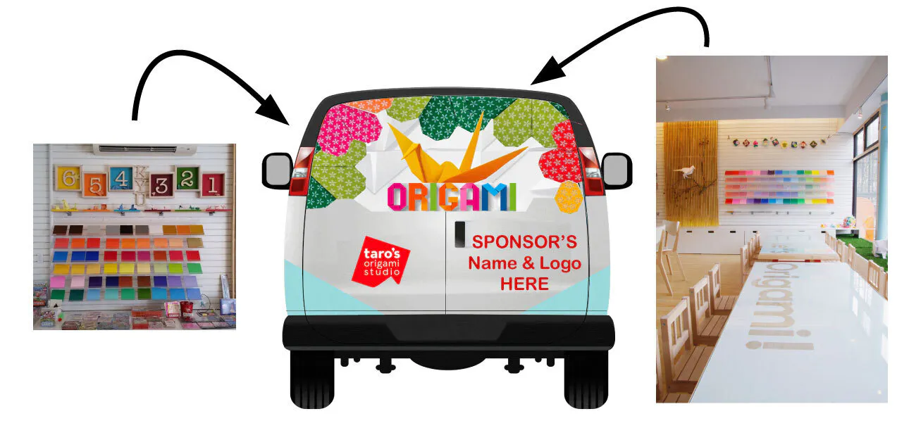 折り紙カーの派遣場所はNYとその近郊に限られるので、日本に派遣することはできませんが、リターンとして、スポンサーになっていただく以外に、現在アメリカでしか手に入らないタローズ折り紙ペーパー等を用意しました。是非、何らかの形でこのプロジェクトを応援してください!