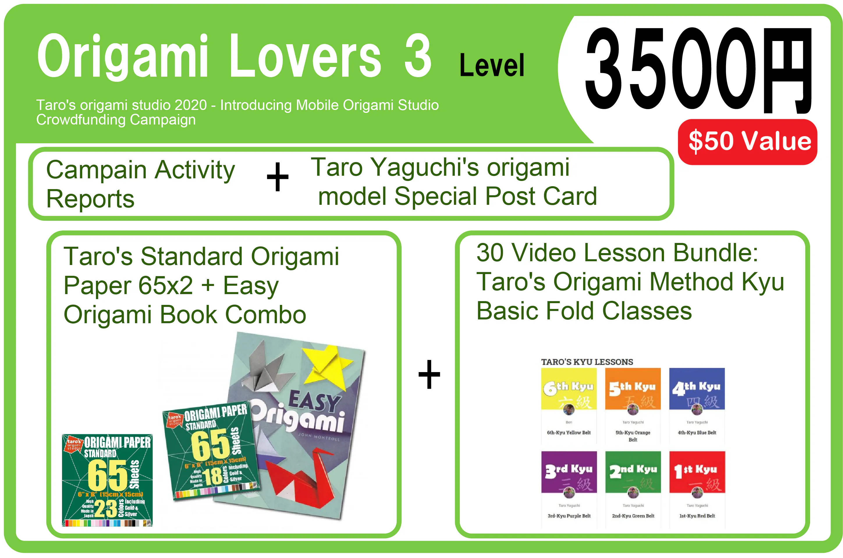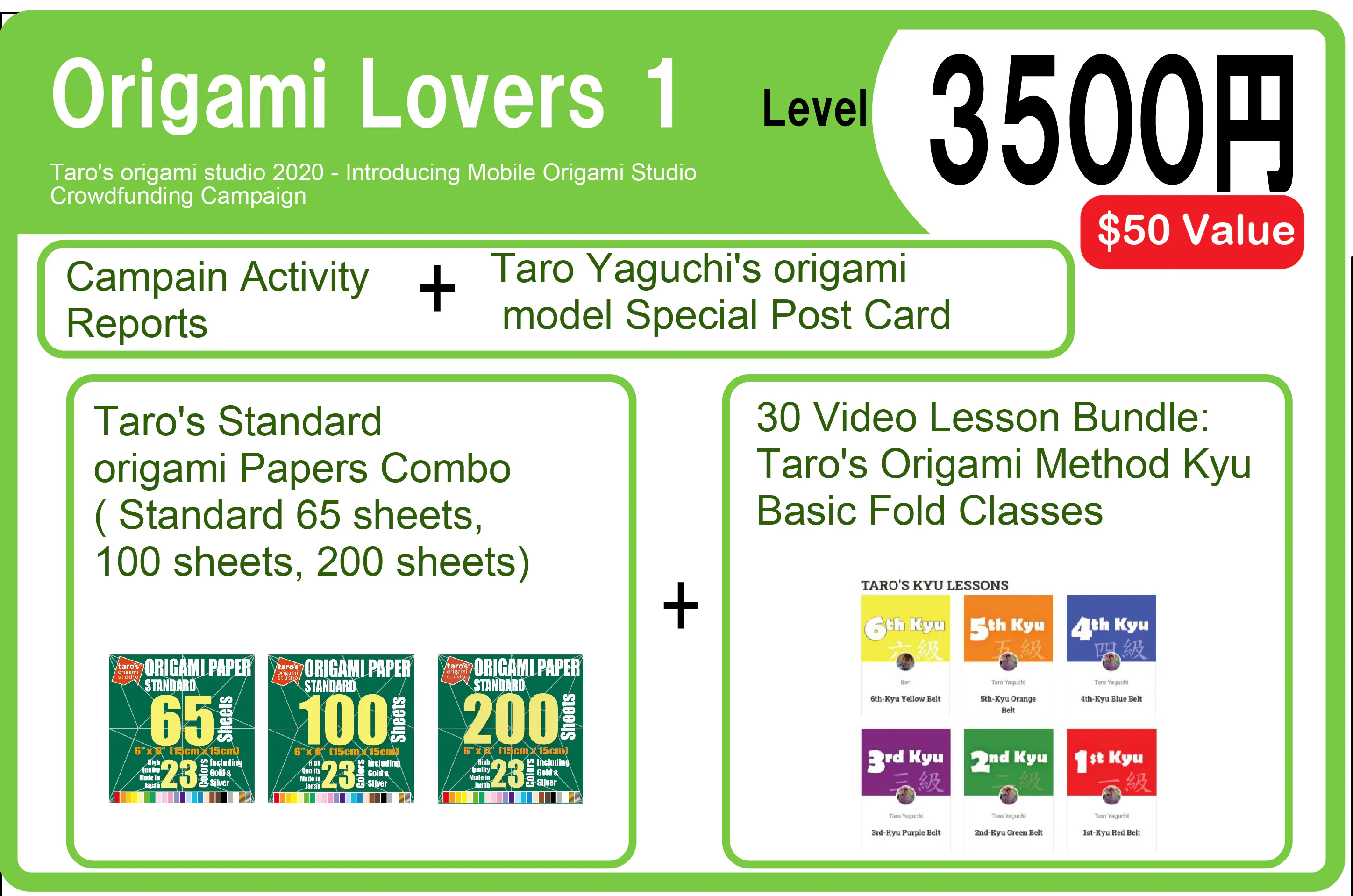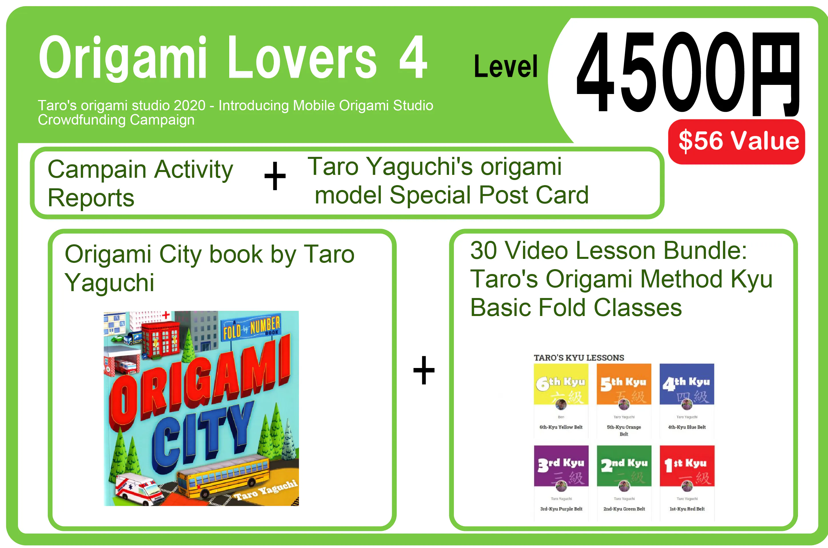 上記Origami Friendsレベルの活動報告+ポストカードに加えて、以下のリターンになります。