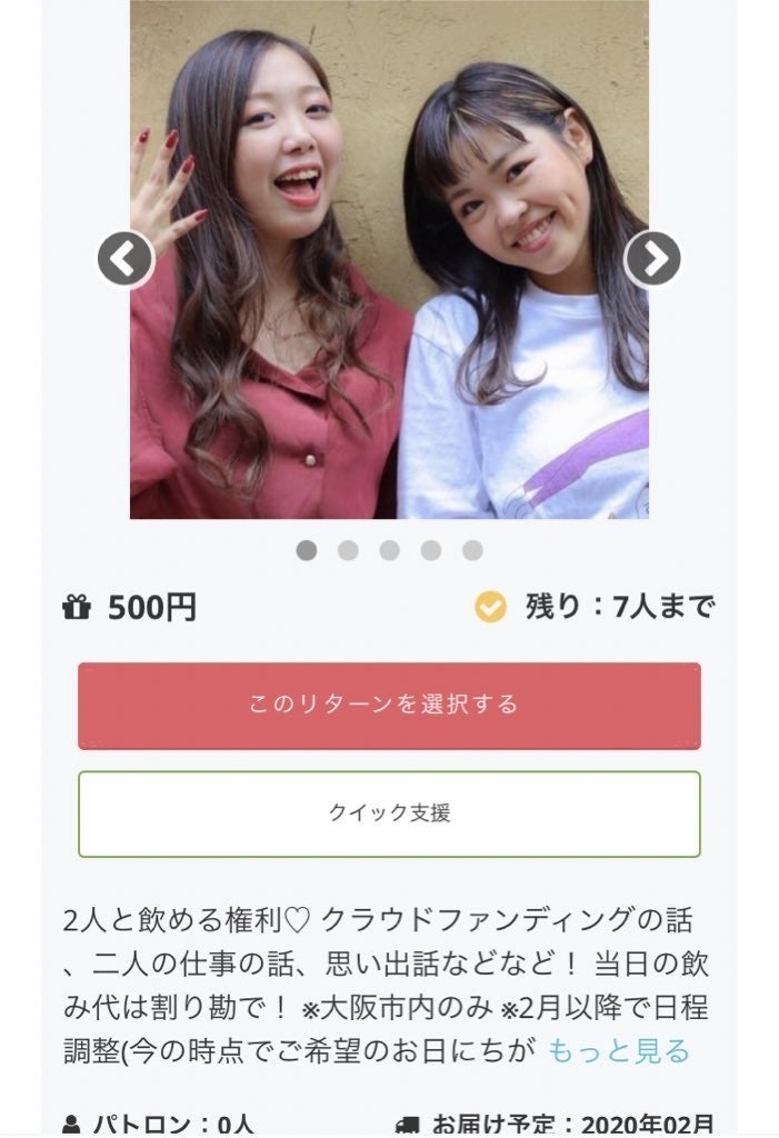 なんとこっそり追加リターン入れちゃいました(笑)私たちと飲みに行ける権利!(笑)すみません調子乗りました(笑)