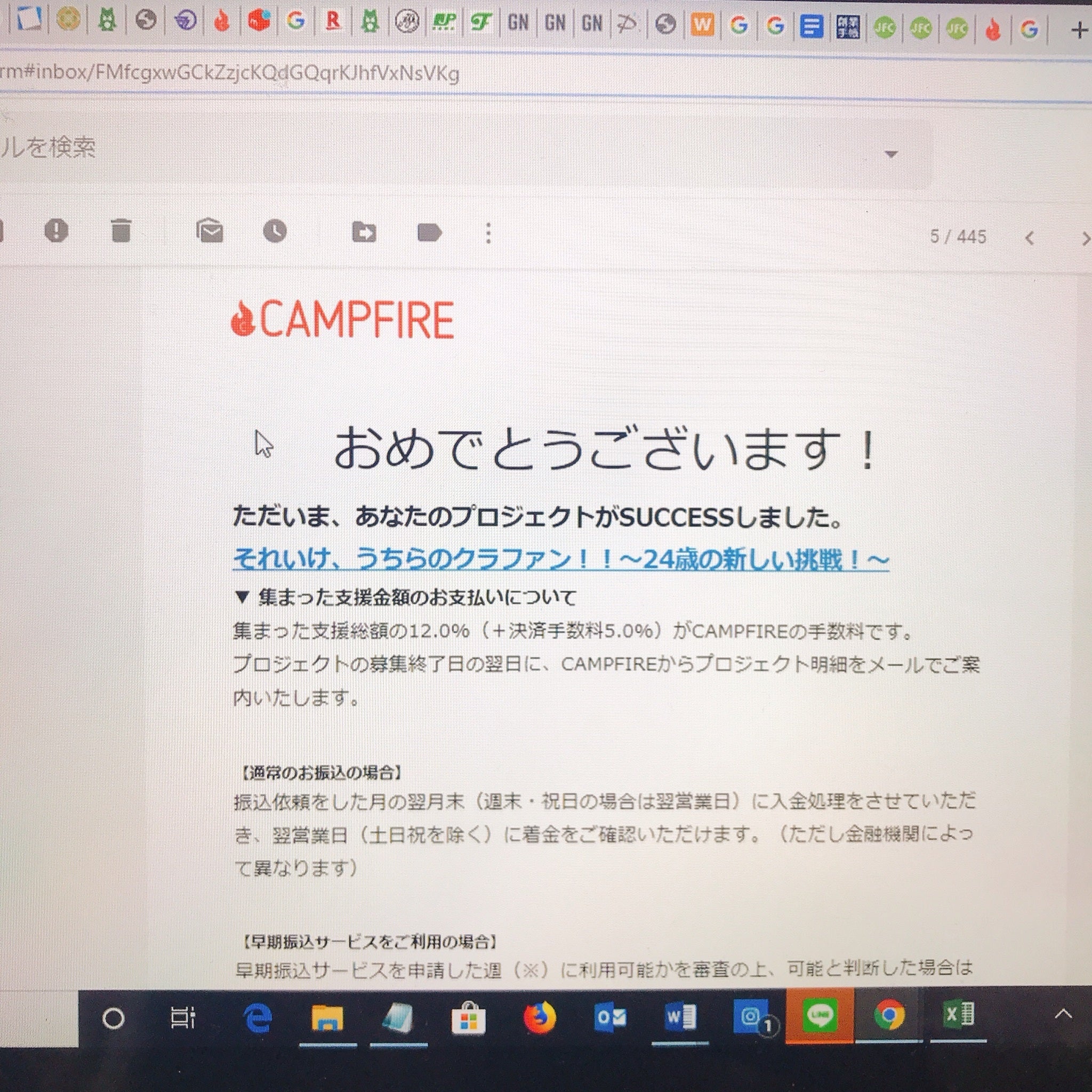 クラウドファンディング自体、知らない人も多い中で、本当に達成できるのか?と不安はめちゃくちゃありましたが、無事に達成させて頂き、本当に嬉しいです!ありがとうございます!