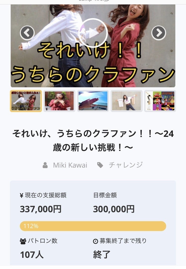 自分のやりたい事をこういうサイトを通して発信し、夢が現実に出来る環境がある今の時代だからどんな事でも恐れずもっと夢ややりたい事を発信して助け合う輪が広がってほしいと思いました。