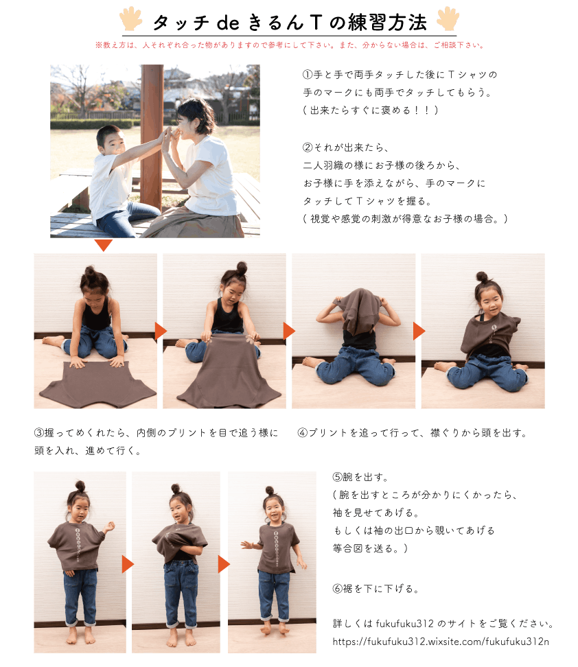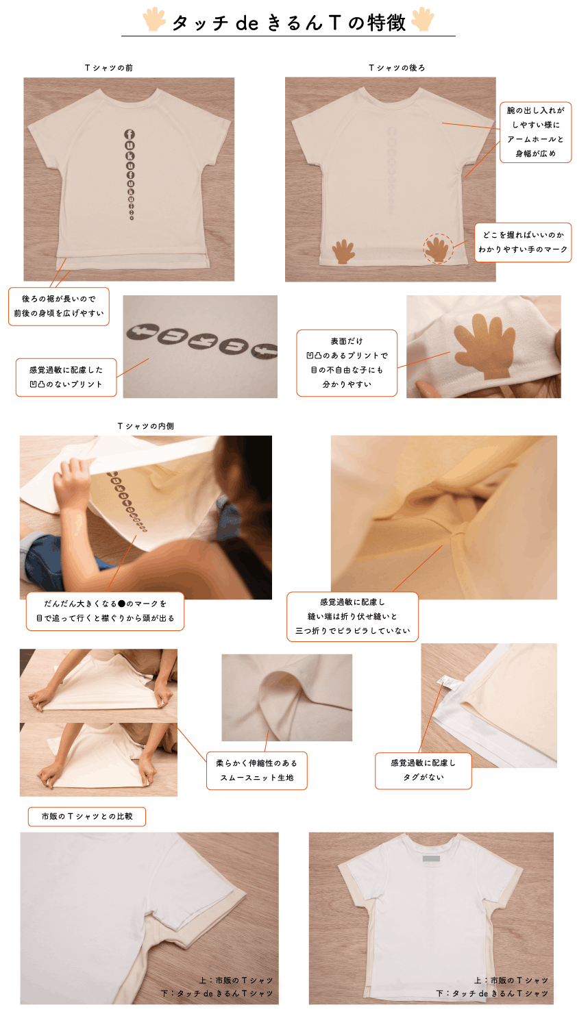・着方を覚えられるTシャツ「タッチdeきるんT」
