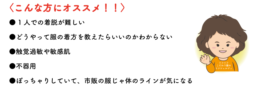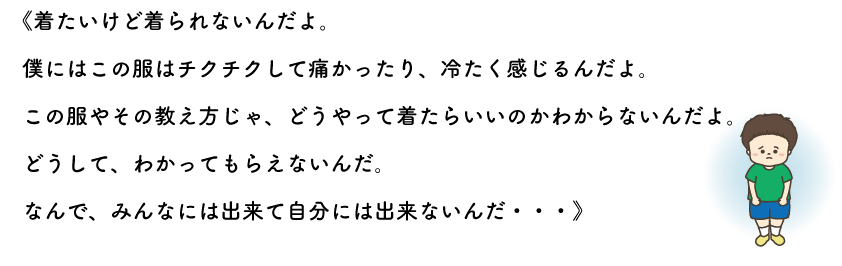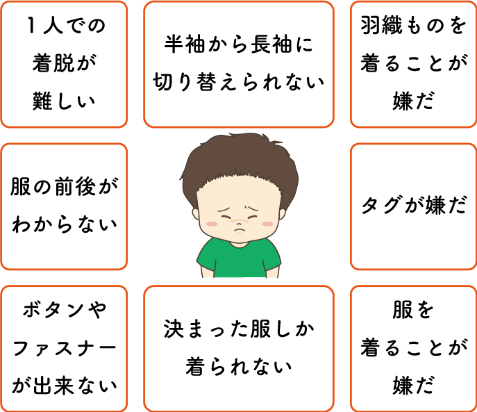 などの特性をもつ子がおり、その特性が服の悩みの原因となることも多いです。