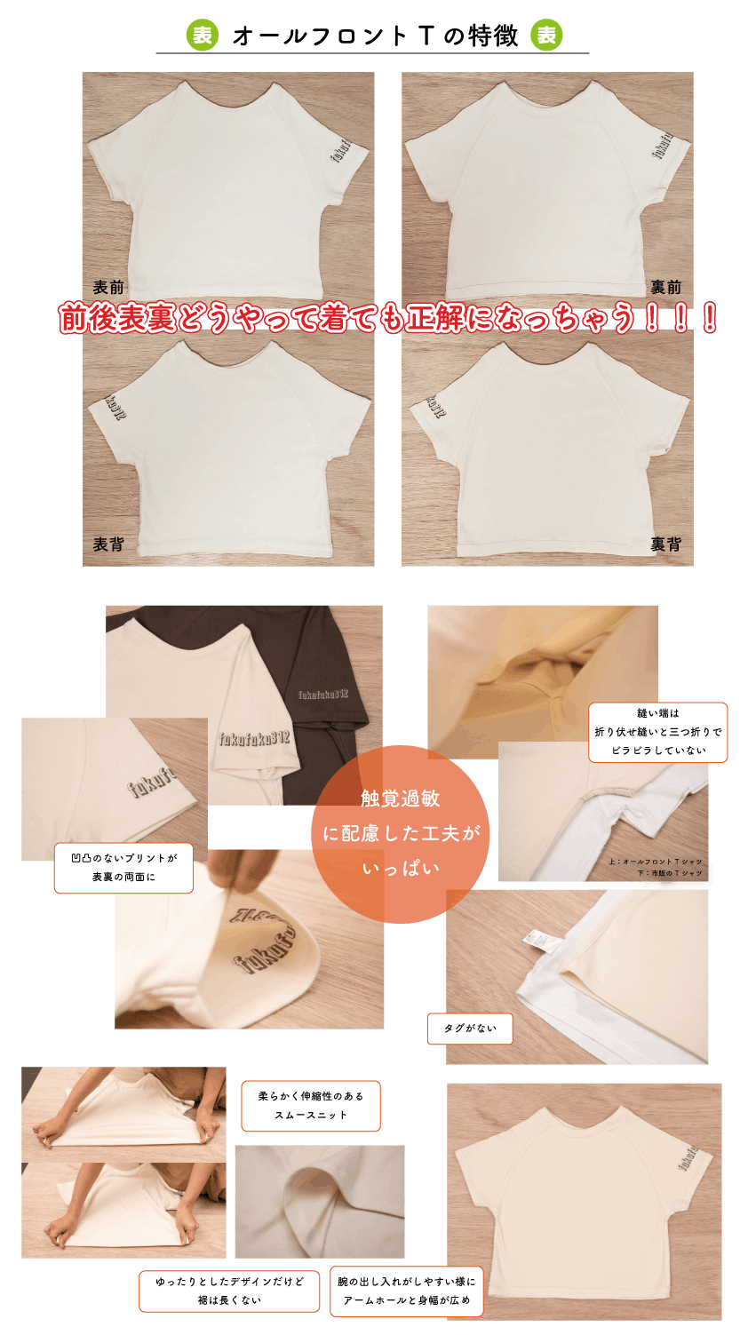 ・前後裏表どうやって着ても正解になっちゃうTシャツ「オールフロントT」