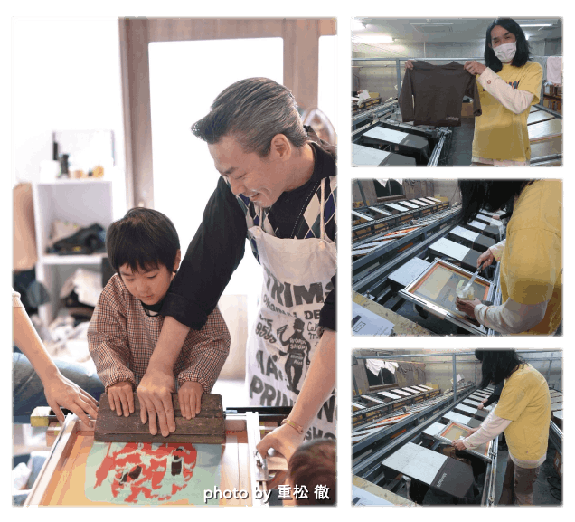 H.Sketch様にて縫製されたTシャツ1枚1枚に手作業でプリントして頂いております。